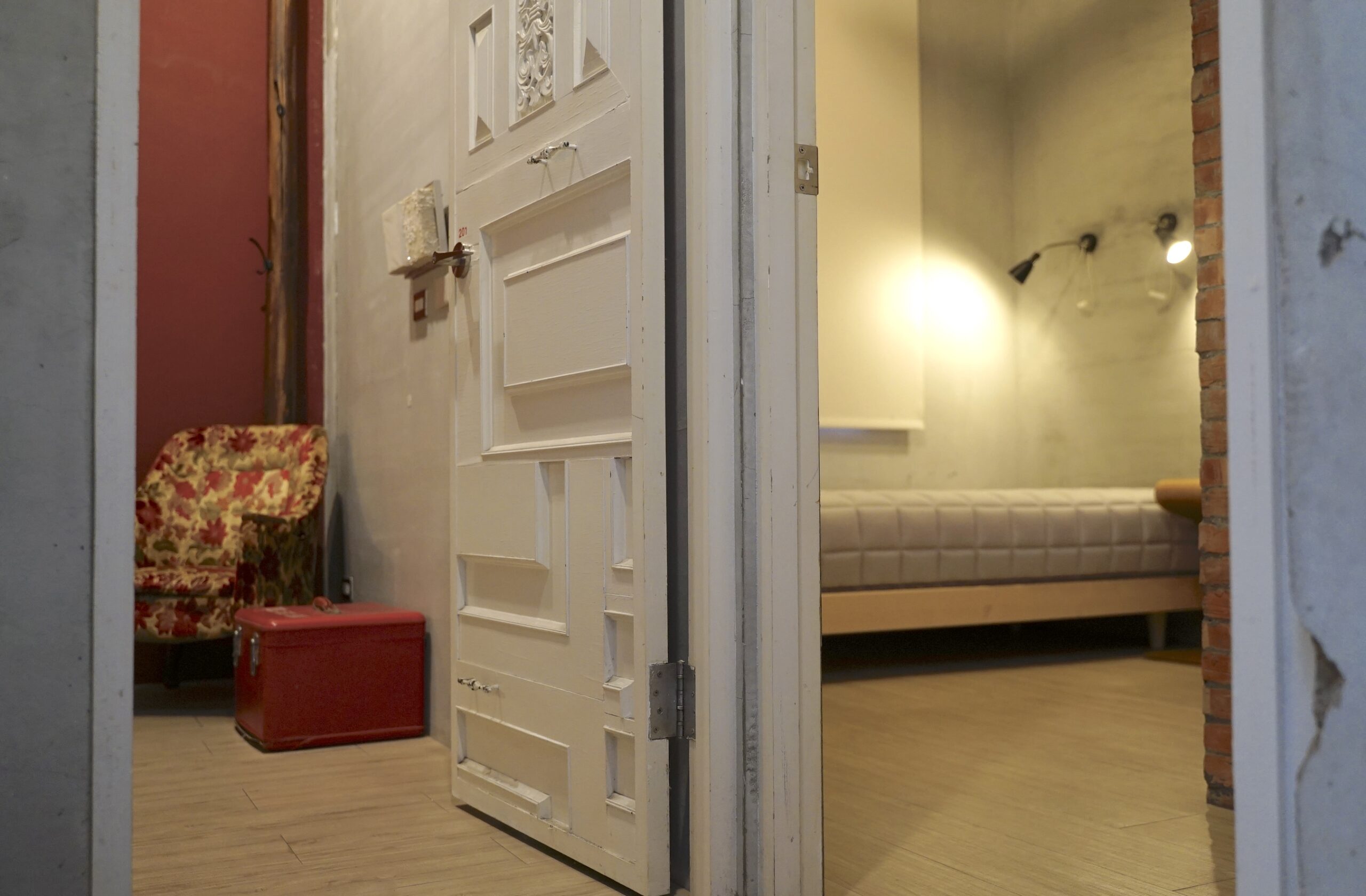 こちらは二つの独立した個室に改装し、浴室は両部屋で共有するプライベートルームとしました。友人同士や、それぞれが適度な距離感とプライバシーを保ちたいお一人様でのご利用に最適です。